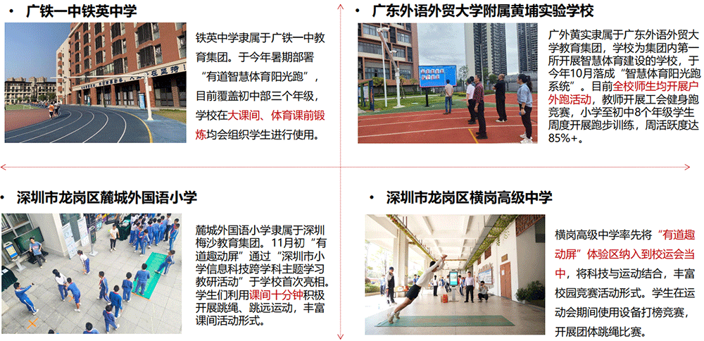 学校建校于2004年9月,曾用名“广州市第四十七中学汇景实验学校”;2018年学校更名为广州市天河区汇景实验学校。认定的智慧校园实验校之一,于22年9月正式引入有道阳光跑系统。